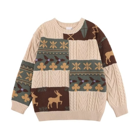 Erkek gevşek çuval bezi uzun kollu kış sıcak rahat kazak kazak desen dekorasyon örme sonbahar logosu için ön